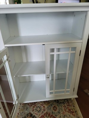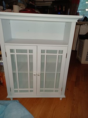 [This review was collected as part of a promotion.] Elegant Home Fashions' Wooden Floor Cabinet with 2 Glass Doors in White is a beautiful accent piece to add a little something extra to your room. The pieces of the cabinet themselves are packed securely, ensuring nothing arrives broken even when shipping. The instructions to assemble the piece of very clear and straight-forward, with each piece labeled and all of the necessary hardware labeled as well - no guessing required!