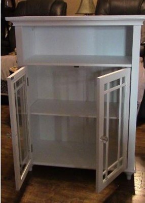 [This review was collected as part of a promotion.] First off that came very well packaged it was very easy to put together a came with everything that it needed it's really stunning it's a very elegant and beautiful I think everyone should have this it's really awesome you can put your dishes in it or you can put your extra canned goods and supplies that you need to put up whatever you need to put the unit would really be awesome if you can set it in your living room and put little different wet knots on it or you can use it for your kitchen for the extra supplies that you have for your kitchen is very good quality and an excellent value it has two stunning doors that has glass in the doors they make excellent storage they make awesome gifts for weddings or for Christmas the color is beautiful and white it as two French doors with glass inside the door it's made of wood. Really great love it you can even use it for your dishes.