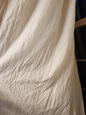 [This review was collected as part of a promotion.] When opening the curtains they were wrinkled from the packaging. I followed the wash instructions and the curtains ended up really wrinkly. The curtains are wonderful quality. The fabric looks and feels light and airy. The top where the rod goes through is stiff and holds the folds well to give them volume. I love the way they look.