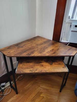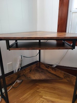 ODK Corner Triangle Computer Desk w/ Storage Space & Keyboard Tray, Rustic Brown