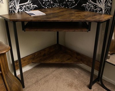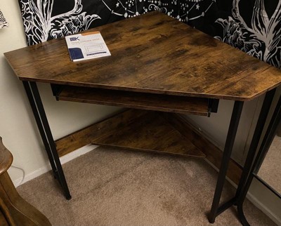 [This review was collected as part of a promotion.] I got this ODK Corner Triangle Computer Desk w/ Storage Space & Keyboard Tray in the shade Rustic Brown and overall I really love it! It fits great into the corner of a very small bedroom I have. This is great for space saving and tight spots. I felt the directions for this were well written and pretty easy to follow. I like that this has a spot for the keyboard if you are using this as a computer desk. I also like the overall design. This feels solid enough but is light enough that its easy to move around if needed. I recommend this.