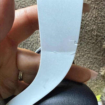 Thin, not very durable plastic as you can see in the photo. My headset broke right near the ear area where the white plastic is curved. I am not going to buy this again.