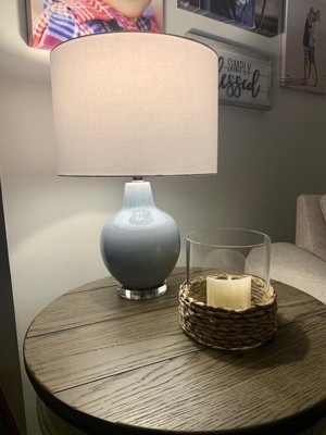 Grace Ceramic Table Lamp Blue - Splendor Home: Reactive Glaze, Cotton Drum Shade, 3-Way Switch
