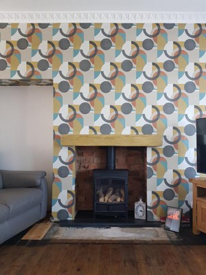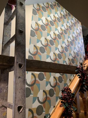 A full roll of this product is 20.5 inches wide and 396 inches long. A full roll can cover up to 56 square feet depending on the design match and pattern repeat. A sample of this product is 8 inches by 11 inches. Retro Geo Shapes is a fun and funky way to brighten your walls. This contemporary geometric wallpaper design has an equally modern color palette, intertwining shades of warming neutrals with pops of teal, yellow and orange for a statement look. This wallpaper is sure to liven up any living space. The matte finish adds a modern flare to this retro design. Offers a smooth, untextured finish. Straight match with 20.9 inch pattern repeat.