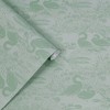 A full roll of this product is 20.5 inches wide and 396 inches long. A full roll can cover up to 56 square feet depending on the design match and pattern repeat. A sample of this product is 8 inches by 11 inches. Inspired by a beautiful antique painted artwork of swans gliding across water, Swans Wallpaper is perfect for creating a serene feel to any room. The bold jade green colorway showcases these dainty animals in a lush landscape. Pair with colorful accessories to add a burst of fun or tone it down with neutrals for a true country chic look. Offers a smooth, untextured finish. Straight match with a 20.86 inch pattern repeat.