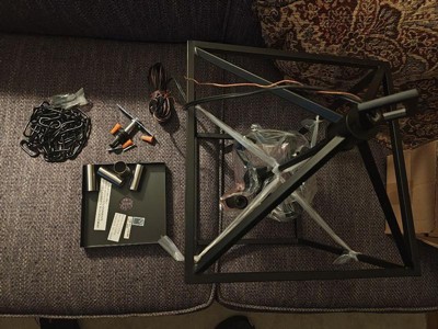 [This review was collected as part of a promotion.] I love this light fixture, the pictures really don't do it justice. The middle part that I have left the packaging on moves. Which is why I've left it on until we hang it. I love that it has that old, hanging candle holder vibe. The instructions seem to be pretty simple and easy to follow and I just can't wait to get this up and ready to go!