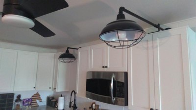 Perfect looking, nicely designed, install pretty easy. Creates a nice amount of light. Installed 2 of these on either side of overhead door of woodworking shop. Purchased the same style smaller ‘shade’ for walk thru door.