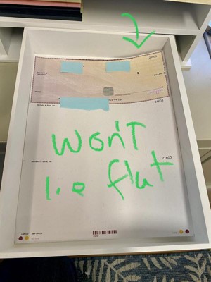I purchased this to put next to my printer. It nicely hold copy paper in the first tray, and assorted note pads in the next two trays. Overall it very cute. HOWEVER...there is a huge flaw. The main reason I purchase this item was to be able to store blank laser-printer checks in the drawer. And guess what, the checks do not lie flat in the drawer because its too narrow by about .25 inch. Why, why, why??? Who would design something for an office and overlook such an important detail?