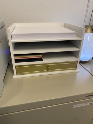 Kate and Laurel Industrious Rectangle Wood Letter Tray, 13x9x10, White and Gold