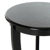 The Mary Pedestal Side Table with a distressed black finish on pine is the perfect accent for any room in need of a feminine touch. With graceful curves and simple cabriole legs, Mary offers a round table top and a smaller bottom shelf to hold your treasures.