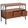 The Joshua Console masterfully blends vintage details with modern farmhouse charm. An extra shelf and three roomy drawers with woven wicker fronts make light work of organizing lifes clutter, and its natural finish shines against Joshuas artfully twisted antique pewter frame.