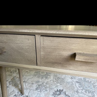 I love the look of this table. It’s a great style and color. The quality could be better - the drawers aren’t a smooth pull, table is slightly wobbly (but comes with mounting supplies) and ours came with a very small scratch. We really appreciated how easy it was to assemble.