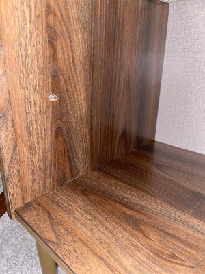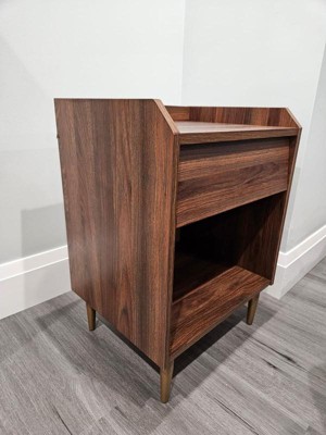 [This review was collected as part of a promotion.] Great little night stand for the spare bedroom. I love the walnut color. The instructions are easy to follow and the assembly itself is fairly easy. This didn't take very long to put together and the product turned out great. I would not recommend using a drill to tighten screws as that could cause damage from over tightening. Install all parts by hand to remove that issue. Other than that this is a solid product.
