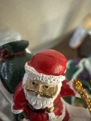 Quality received is definitely not the quality advertised. The details on the Santa are not crisp. The antlers on the reindeer are a cheap flimsy plastic material that do not stay positioned in an upward style. They are floppy! And you cannot try to adjust them too much because the plastic material will snap in half or off! I truly feel I received a returned product. The Mr Christmas box was tattered and torn. The adapter wasn’t inside the plastic, and the Santa reindeer attachment was outside of the original bubble packaging. Very disappointed. And- their system will not allow me to add pictures! These are ridiculously expensive for the quality.