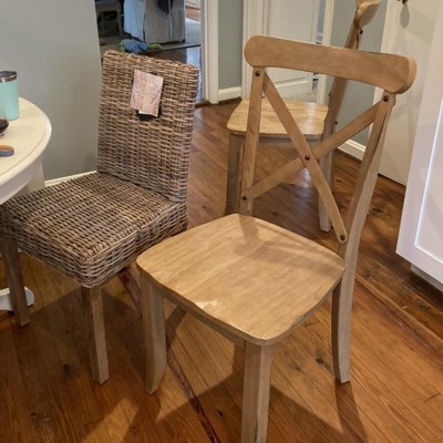 Ordered 6 chairs, received them quickly and appreciated the zero assembly, however the first chair taken out of the box was broken in multiple places. It’s almost like they were woven too tight, which caused the wood to snap in many places. Hadn’t even sat in it to cause the breakage. The seat was snapped in multiple places, and so was the back rest. Standing up from the chair caused my clothes to catch on the broken sprigs. Returned them and was refunded with no issue. I took pictures to show Target to initiate the return, but can no longer find them on my phone.