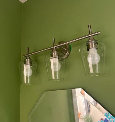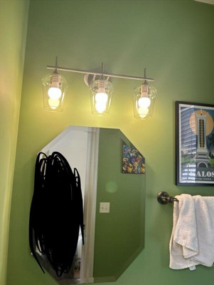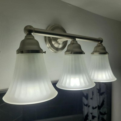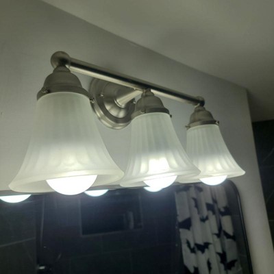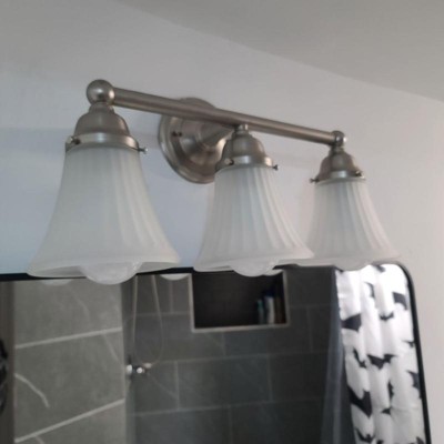 [This review was collected as part of a promotion.] This light from millennium lighting in brush nickel came in perfect time for my bathroom , renovation. It is a lovely brushed , nickel with a frosty glass shade. The three lights are bright and the light seems durable. Install was easy and it makes my bathroom more comfortable.