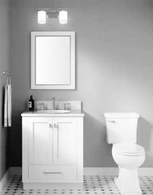 The unit looks nice and blends in well in our bathroom. One of the electrical fixtures is tilted slightly which puts one of the sconces askew