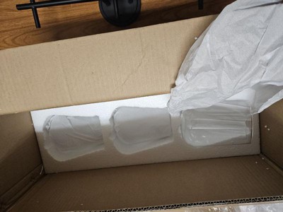 [This review was collected as part of a promotion.] Absolutely loving this vanity lighting. The style is so gorgeous! The installation was super easy, ( well, for my husband ;) ) They look like fancy wine glasses. The only thing is glasses do seam very fragile. So while cleaning them you gotta be careful. The box came with styrofoam and everything looks perfect. Can’t wait to take some selfies on this light.