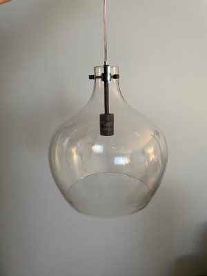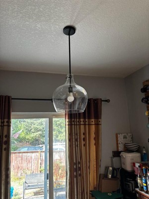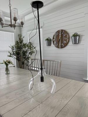 [This review was collected as part of a promotion.] Love this pendant! The matte black finish looks sleek and modern, and the clear glass shade shows off an Edison bulb beautifully. It gives off plenty of light and was easy to install. The only downside is that the bulb is fully exposed, so it can be a little bright without a dimmer. Also, it is very large compared to what I thought it would be. Overall, a stylish, durable and affordable upgrade!