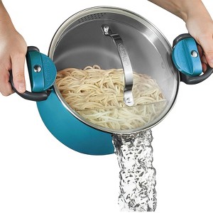 Gotham Steel Aqua Blue 5 QT Multi Purpose Pasta Pot with Twist and Lock Handles