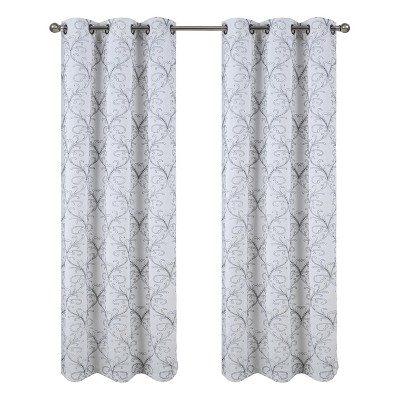 The Brookfield jacquard grommet panel is a beautiful addition to your home decor with a damask-textured jacquard fabric. It features 8 silver metal grommets with a 1.5" grommet diameter for easy hanging. The panel is machine washable and provides a light-filtering and refreshing new look. This jacquard design grommet panel is a versatile curtain panel that can be used in bedrooms, living rooms, and dining rooms. This curtain is made with 100% polyester. It can help to block out light, provide privacy, and add a touch of style to your home décor. Measures: 54" x 90". Color: White.