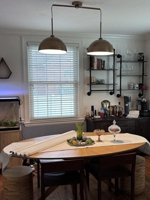 I had the tab open for this light for MONTHS before I finally clicked "buy now". It's such a change from what I had before. I couldn't be happier with this light. I have brass hardware and lighting in my kitchen and the style and shade of this light matches my kitchen hardware perfectly. I love how it only lights up the table, so it's not harsh or too bright. We've had so many compliments on it already! I would definitely choose this light again!