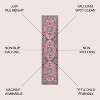 - A muted color palette of pinks, blacks, and whites creates a distressed Persian pattern