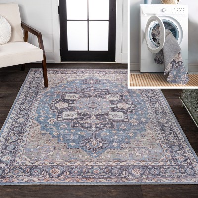 JONATHAN Y Vector Modern Coastal Geometric Machine-Washable Blue/Cream 5 ft. x 8 ft. Area Rug, Easy-Clean, Soft, Durable Construction