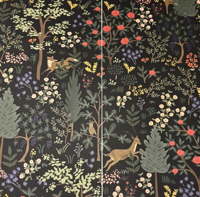 Rifle Paper Co. Woodland Black Peel and Stick Wallpaper: Self-Adhesive Animal Icon, Multicolor, 45 Sq Ft Coverage