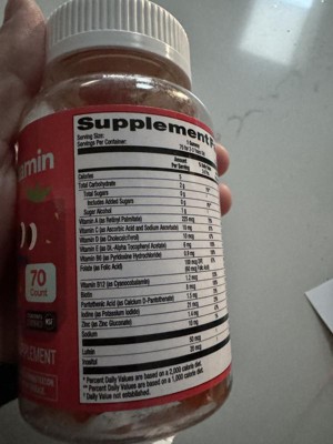 My son loves these vitamins. The gummies are soft and delicious and they are the highlight of his morning. It's so nice not having a battle and not worrying about your kids getting extra vitamins they need to grow. All ingredients are listed clearly with plain directions for their use. We take one a day. There are 70 in each container.