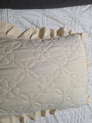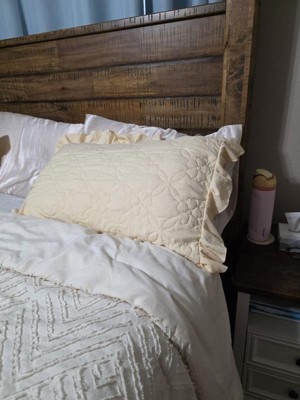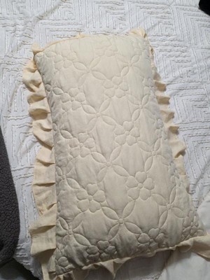 [This review was collected as part of a promotion.] The pillowcase is a lovely light yellow color, and the texture has a cozy, quilt like feel. It also has an inner lining along the top side, which gives it a bit of extra structure. I believe the material is 100% polyester. After washing and drying, the pillowcase didn’t shrink, though it did develop some wrinkles. I also appreciate the envelope closure as it keeps the pillow in place, unlike open-ended cases where the pillow can easily slide out. Overall, it’s a well made pillowcase with a lovely look and practical features.