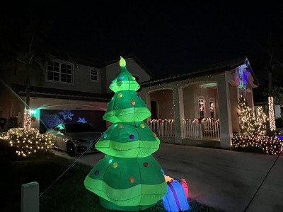 First off, I am not an inflatable type of girl but this Christmas tree is beautiful!!!! 🎄 She’s been on for about 3 weeks straight because I don’t like to see inflatables thrown down on the grass deflated and so far she’s survived our windy days here in Miami. Easy setup. She’s bright and HUGE. Exactly what we were looking for.