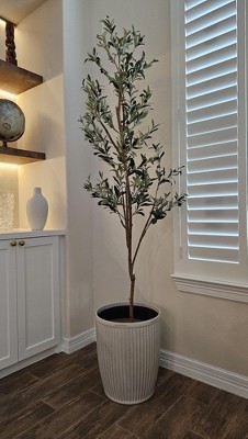 Using this for indoor decor for my olive tree. Love the ribbed weathered look and it's light weight to easily move the plant around the house. The large size is perfect without looking bulky in the corner room.