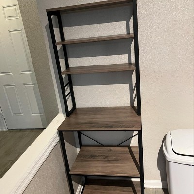 VASAGLE Baker's Rack Microwave Oven Stand Kitchen Tall Utility Storage Shelf 6 Hooks and Metal Frame Rustic Brown and Black