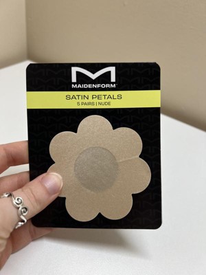 Whether it’s a plunging neckline, a lightweight fabric, or for added discreetness, Maidenform Satin Petals work wonders under your bra or when wearing bra-less styles. Made with smooth satiny fabric and coated on one side with skin friendly adhesive, these concealing petals are single use and disposable. Before applying make sure your skin is clean, dry and free of any products including lotions and perfume for the best adhesive performance.