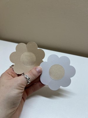 These satin petals are surprisingly comfortable to wear. I have sensitive skin and anticipated irritation but experienced none. The petals stayed in place and then were easy to remove. I’m also glad a test circle is provided. The petal is definitely thin yet conceals—again—surprisingly well. You may experience some wrinkling with skin texture / stretch marks. Overall I would wear these under a top or dress that’s thick and likely textured when wearing a bra is not possible to have an added layer of security.