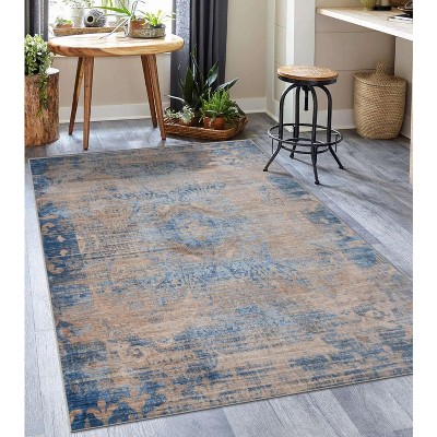Product Name: Luxe Weavers South Western Geometric Blue 5x7 Indoor Area Rug with Fringe