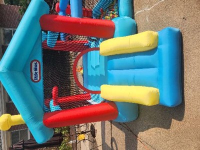 The bounce house was missing the inflatable basketball and it looks like someone bought it to use it for a party and returned it after. It has stains everywhere