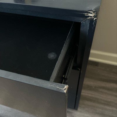 This product arrives on time but after inspecting it, the back piece has a deep long gouge, there are prices of trim missing or damaged and one drawer was completely separated from the drawer slider. What an epic disappointment. For a dresser of this price I would expect better quality.
