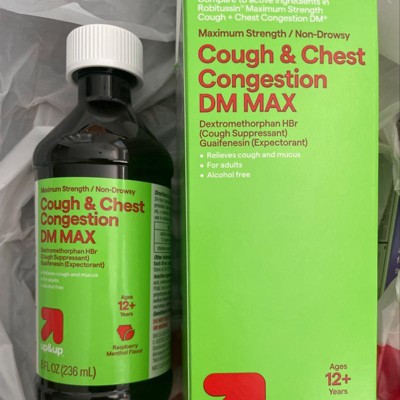 Cough + Chest Congestion DM Max Flu Treatment Raspberry Menthol: 8 fl oz Liquid - Dextromethorphan & Guaifenesin - up&up™