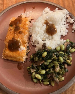 This stir fry sauce was a great way to jazz up some chicken. The Asian flavors tasted great with the soy and scallions. It is definitely a double garlic flavor, and the garlic is borderline a little overpowering. It says that it is mild heat but I would rate it more medium as it does include some sichaun peppercorns. A little goes a long way and this is a great size bottle. I received an incentive to write this review.
