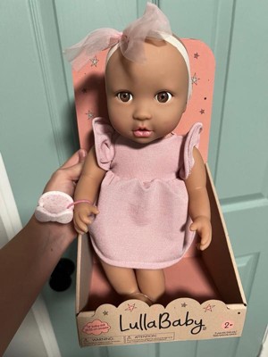 Discover precious playtime moments with LullaBaby. Made with lovable details and realistic features, this 14" baby doll has a friendly facial expression, brown eyes, and a cuddly soft body for little hugs. Plus, kids can explore fashion fun and on-the-go storytelling with baby's adorable outfit, including a ruffle dress and bow headband in sweet shades of pink. The pacifier also lets kids soothe their baby doll during role-play. LullaBaby dolls are a must-have for parents looking to nurture young hearts and minds at an early age, encouraging imagination and inspiring kindness as kids play and grow with their baby dolls. Safety tested to meet all regulatory phthalates and BPA requirements. Makes a wonderful gift for kids ages 2 years old and up and a perfect first baby doll for toddlers.