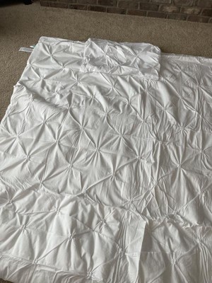Thankfully my husband doesn't care what color our bedding is as long as it's comfortable. Usually in the winter months I have a blanket, a down comforter covered in a duvet and maybe a throw. However, this past year as proven to be the year of the power surge and I need something a lot lighter for nighttime sleeping (IYKYK) This comforter fits the bill perfectly as it's pretty, and cozy, but still easy to throw off in the middle of the night in the throes of a core meltdown. The pintucking is even and well done, but if you have cats take note that it is easy to snag. Love the envelope closure on the shams - makes it so much neater looking.