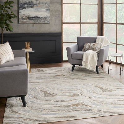 Nourison Glam Marble Indoor Area Rug Grey Gold 3'11" x 5'11"