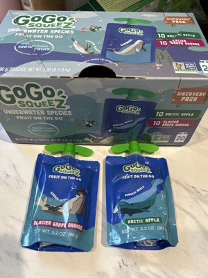 GoGo SqueeZ Applesauce and Fruit Puree Discovery Variety Pack Arctic Apple and Glacier Grape Orange Pouches - 64oz/20ct