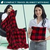 PAVILIA Travel Blanket and Pillow, Warm Soft Fleece 2-IN-1 Combo Large Compact Set for Airplane Camping Car Trips (Checker Red, 60 x 43 inches)