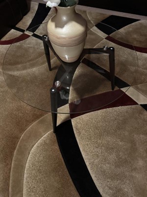 This modern glass coffee table is absolutely beautiful. It came well packaged and was easy to installed following the instructions in the manual and tools. It has a clear glass at the top and three legs which gives it a sleek look. I love the quality and how easy it is to clean. It added a unique touch to my living room. Love it