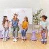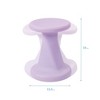 The Twist Stool is a fun flexible seating option that allows users to move and sway while they work. Seats that rock, tilt, and swivel encourage good posture and alertness, and the rounded convex base allows for freedom of movement. Designed for everyday use in schools, homes, or offices, these functional and colorful stools are a fun way to provide extra seating in any learning space. Seats make it easy for students to circle up for discussions or pair with activity tables for individual and collaborative work. Wobble seats help sustain attention and focus by creating an outlet for fidgeting. Continuous small movements help engage the body and brain, aiding concentration without distracting others nearby, while also supporting balance and coordination. The lightweight seat is the perfect grab-and-go stool for taking the classroom indoors and out. Quickly and easily rearrange workspaces to create a dynamic collaborative environment between students or use for individual work study. This wobble stool features a latex-free rubberized base that helps keep the seat in place on hard or carpeted surfaces and a perimeter safety ring that creates a natural stop.