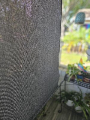 [This review was collected as part of a promotion.] I'm incredibly pleased with the coolaroo shade. It was fantastically easy to put up, and blocks the sun without blocking my view. Looking into getting more for the back porch.