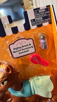 Really great horse doll, super cute and with very soft nylon hair. Love the silly little horse dress and these are a good price. My only complaint is that this tennis horse’s accessory isn’t a tennis racket. I mean I know she has hooves, but the human water bottle that she comes with makes just as little sense. Hope to see a lot more or these either way.